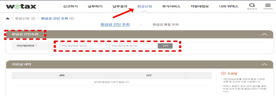 잠자고 있는 국세환급금 / 지방세환급금 찾기