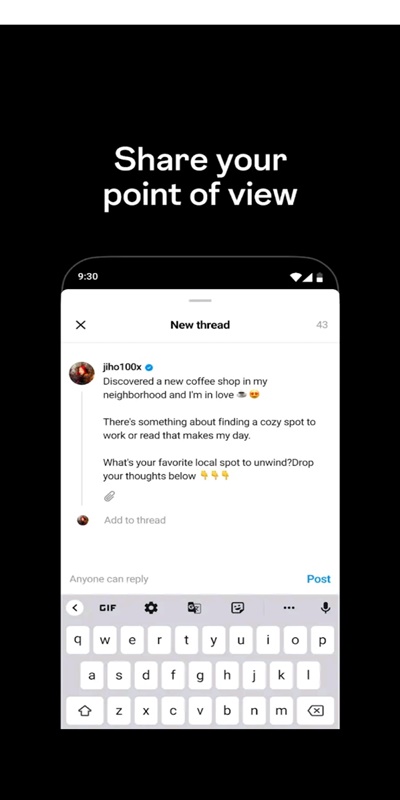 하지만 스레드는 트위터보다 좀 더 확장된 형식의 글 작성과 소셜미디어 활동을 가능하게 합니다. 스레드에서는 사용자가 글을 게시할 때 한 번에 최대 500자까지 작성할 수 있습니다. 이 글에는 외부 웹사이트 링크, 사진 및 5분 분량의 동영상도 첨부할 수 있습니다.