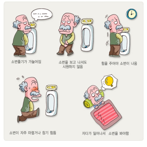 세뇨 : 소변 줄기가 얇아지고 힘이 없어지는 증상