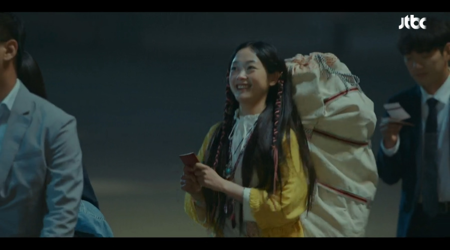 강남순은 비행기를 탔는데 비행기가 이상해졌고 정상착륙이 어려워졌어요. 이때 강남순(이유미)은 비행기 바퀴를 잡고 힘으로 세웠어요. 이 모습을 류시오(변우석)가 보았어요.