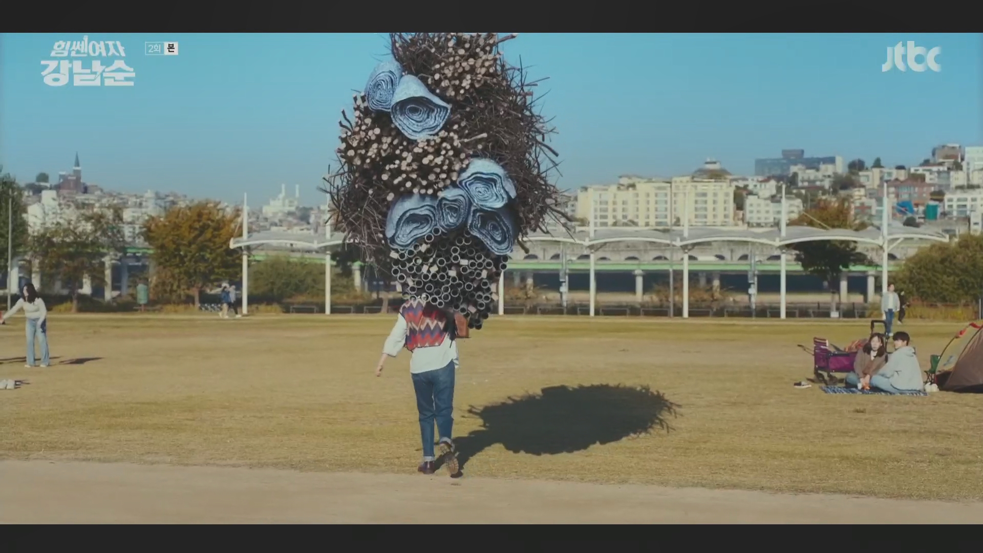 하지만 좌절할 강남순이 아니었다. 한강 공원으로 향한 강남순은 폐현수막을 이용해 게르를 뚝딱 만들어 냈다.