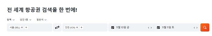 ICN인천도착선택 가는 날오는 날 성인 1명, 일반석직항만 항공권 검색