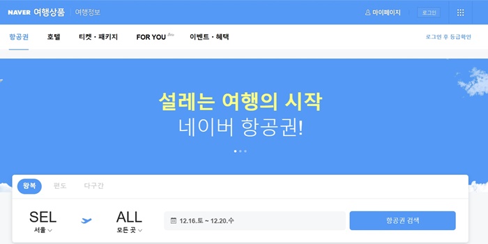국내 최대의 포털 사이트 네이버에서 만든 네이버 항공권은 우리에게 익숙해 사용하기 편리합니다.