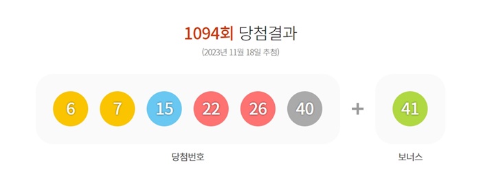 2023년 11월 18일 (토) 1094회 로또 당첨번호는