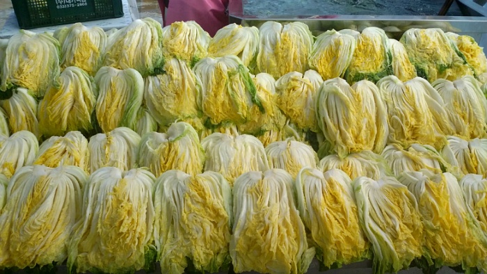 2.5~3kg 정도로 크기가 너무 크지 않으면서 속이 80% 정도 차 있고 겉잎의 두께가 얇으면서 내부가 노란색을 띠는 배추가 가장 맛이 좋습니다.